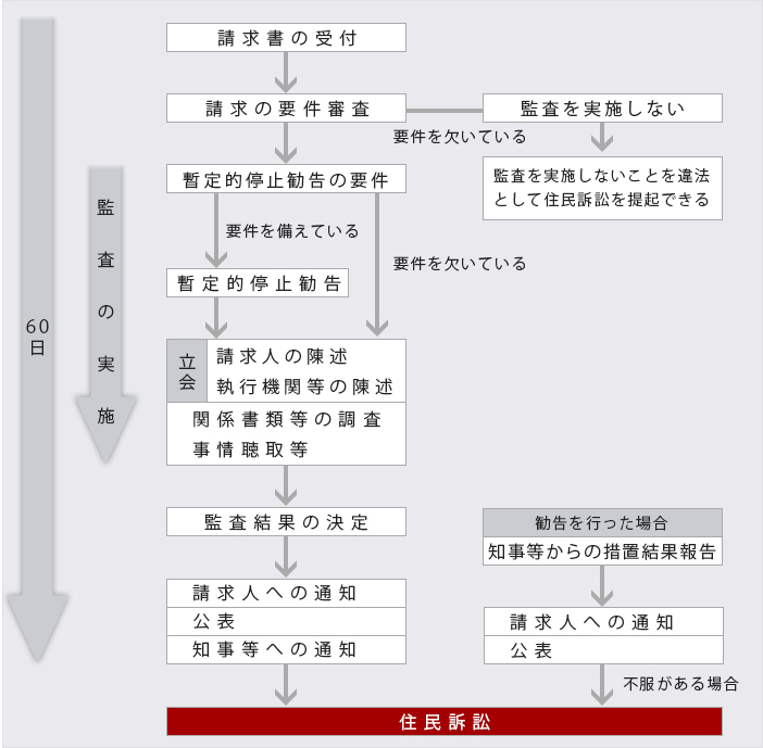 住民監査請求は、地方自治法第242条により、都民の方が、監査委員に対し、監査及び必要な措置を講じるよう求める制度です。